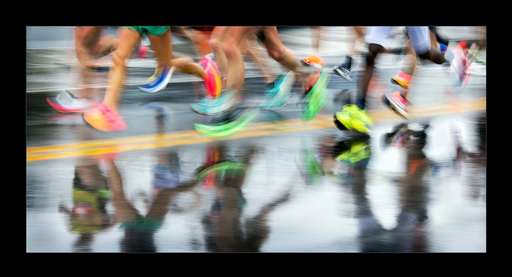 That day’s downpour may have discouraged spectators, but to me, it was a gift and a chance to tell the story of the race in a way I hadn’t before. The runners’ energy, their colorful footwear, and the rain-slicked road gave this image its signature look and ultimately, its name.