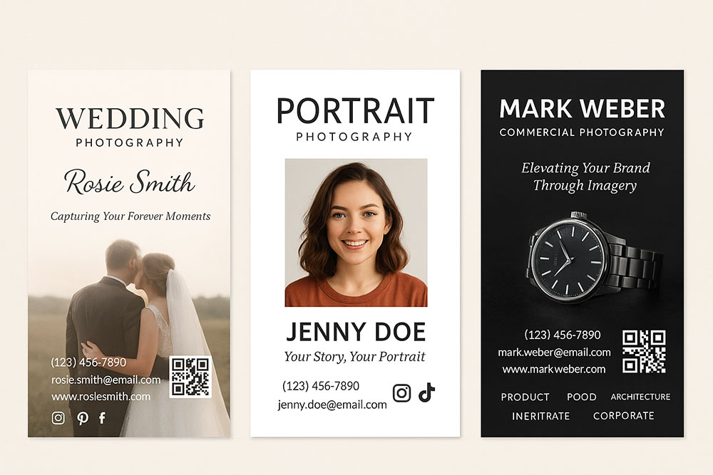 - Include a QR code linking to your website, portfolio, or booking system.